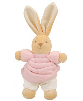 This softly colored bunny makes a thoughtful first companion for baby. It features a floppy, ruched stuffed body. Perfect for baby's small grasp. The embroidered face and gentle smile are especially well crafted. Approximately 10.5" tall. Designed in France. Machine wash and tumble dry. This product comes in a signature, coordinating Kaloo box, perfect for gift-giving! Readmore .. .